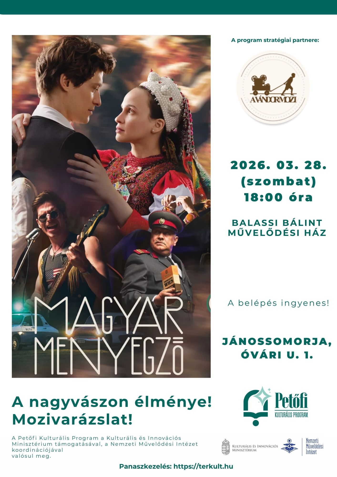 A vetítést a Nemzeti Művelődési Intézet – Petőfi Kulturális Program keretében a Vándormozi valósítja meg.